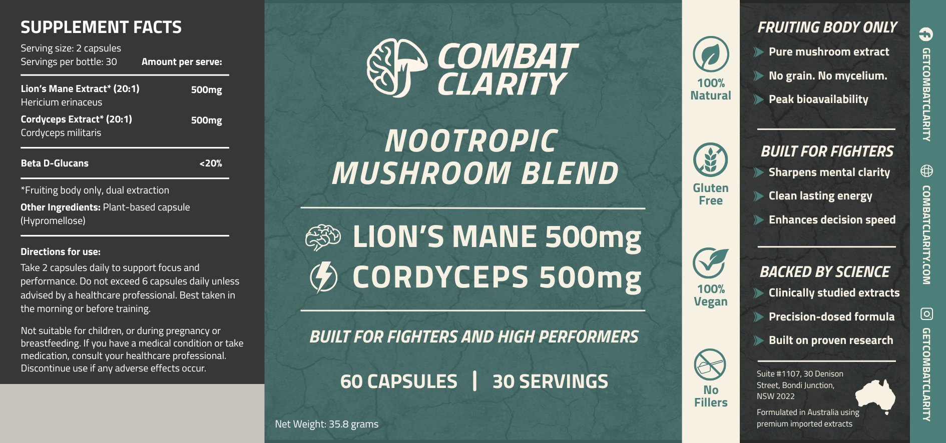 Combat Clarity - Lion’s Mane & Cordyceps Nootropic Capsules